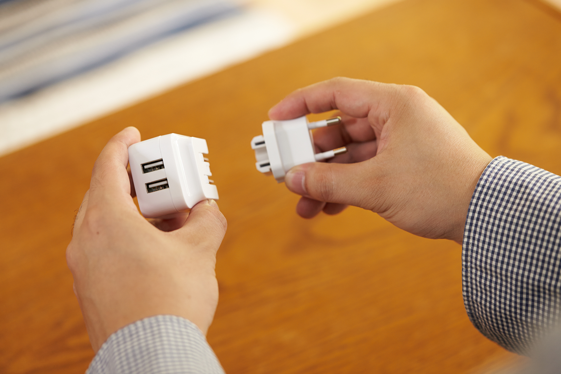 アダプタ本体の電圧が100 – 240 V に対応しているので、変圧器も不要です。