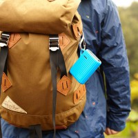 本体にはストラップホールが付属。ロープやカラビナを通してリュックやカバンにぶら下げれば、収納を邪魔することはありません。