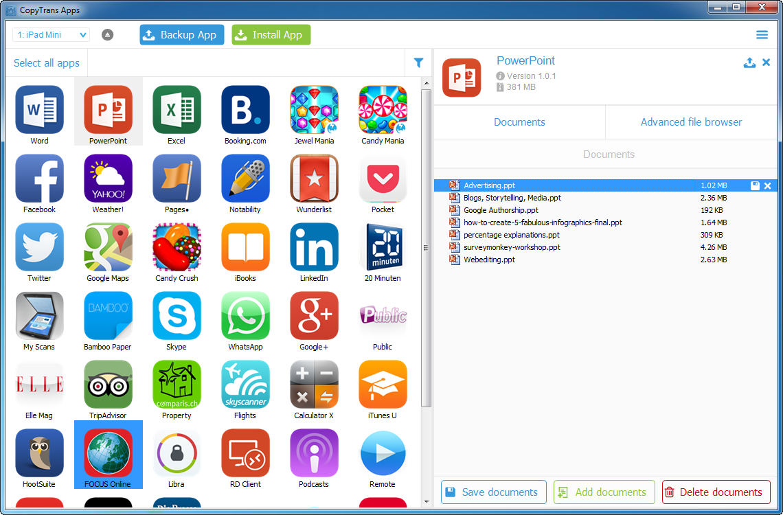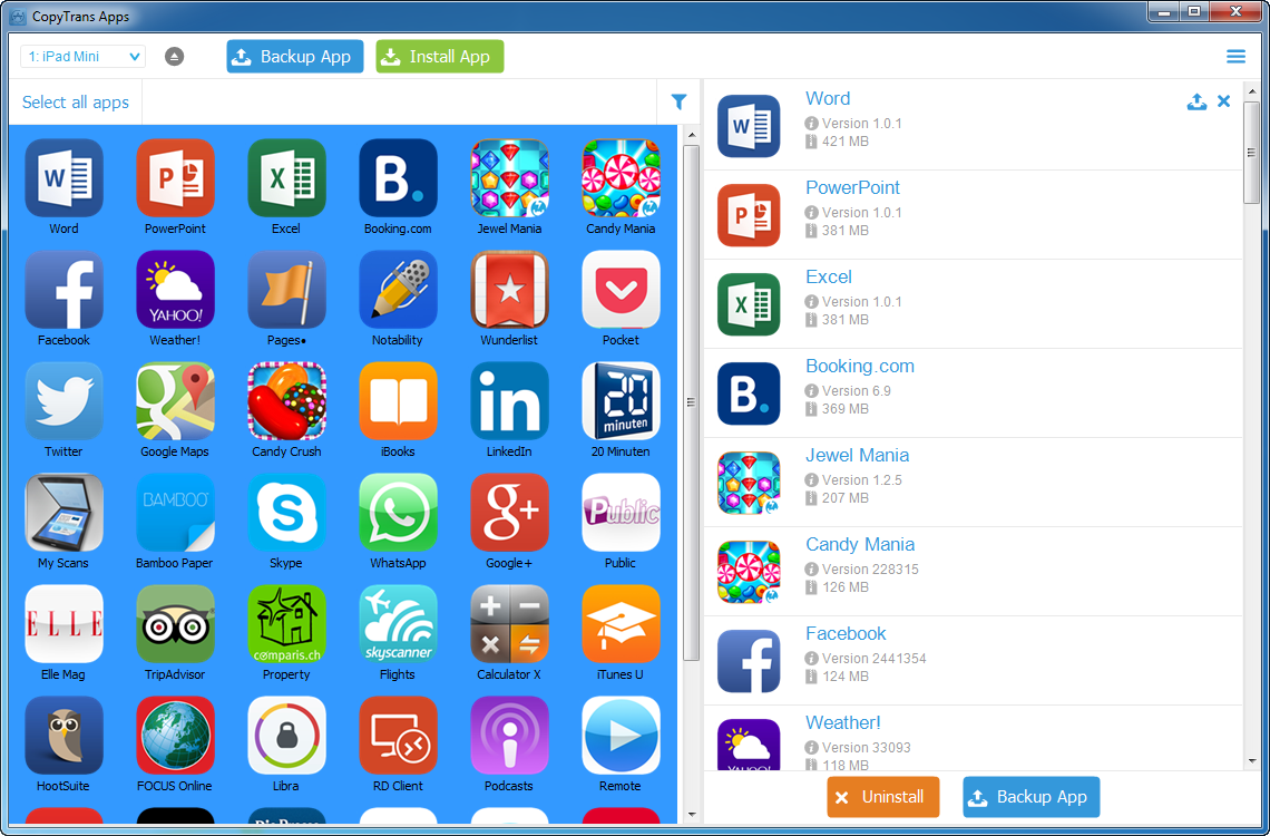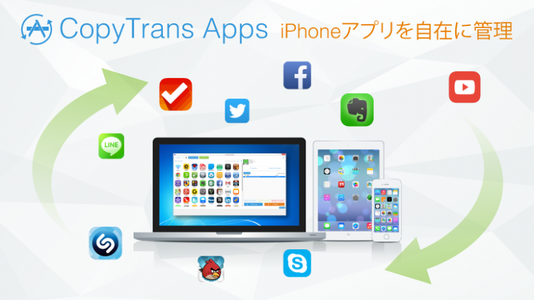 CopyTrans Appsなら、iTunesなしでiPhoneの好きなアプリをバックアップ、データ・設定を丸ごとiPadなどの他のiPadにリストアできるので、アプリ管理が確