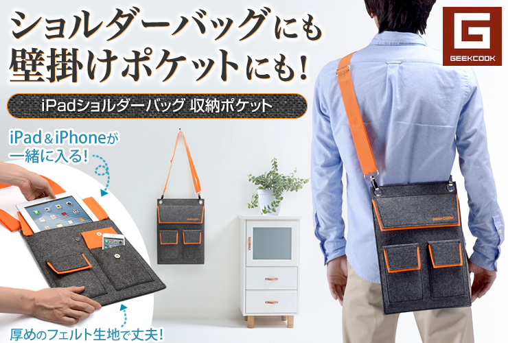 ショルダーベルトを外すとインナーケースにもなり、吊り下げ収納、壁掛けポケット、車収納ポケットにもお使いいただけます。●iPadとiPhoneが一緒に入れられるショルダーバッグです。