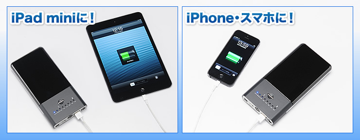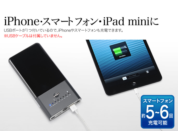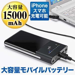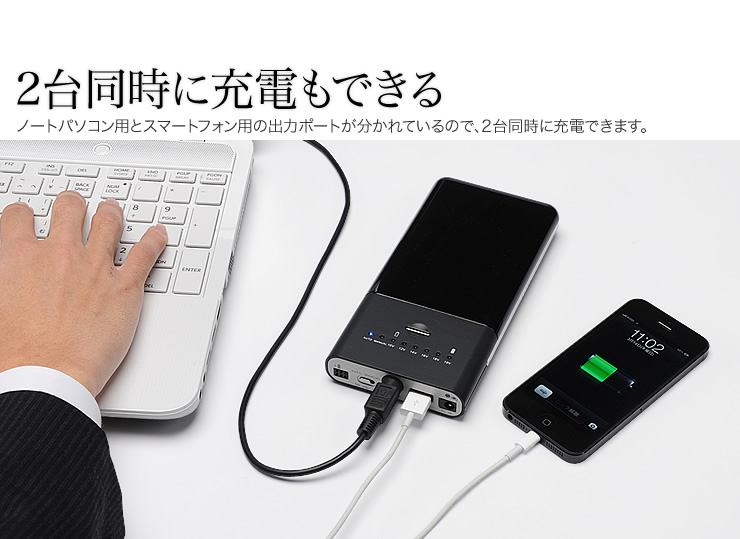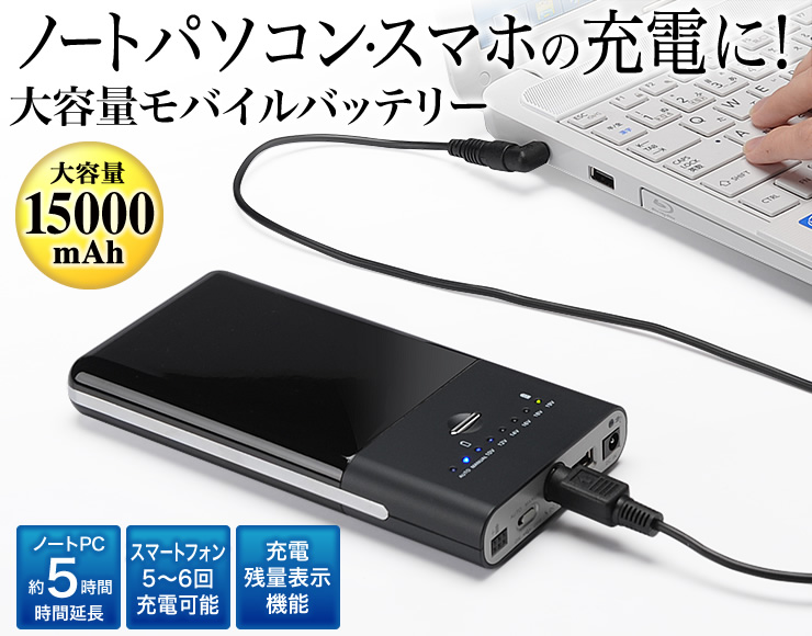 ノートパソコンの電源とスマホの充電に、大容量モバイルバッテリー
