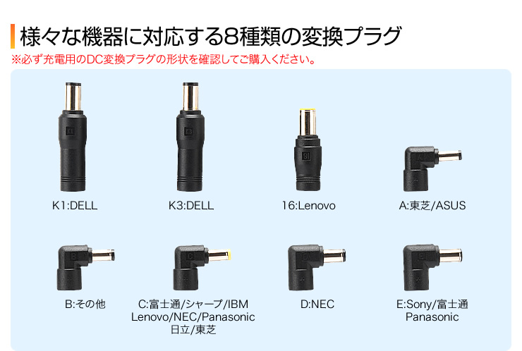 ●様々な機器に対応する8種類の変換プラグです。