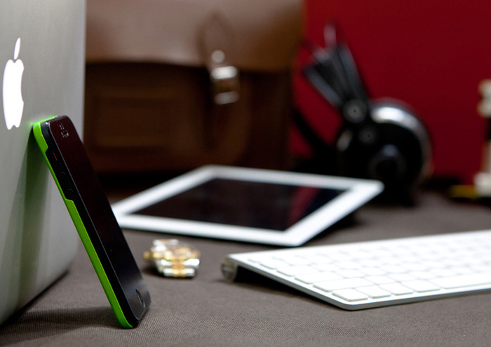 iPhoneを極限まで魅せるため、半分をカバーする独創的なシンプルなデザインに