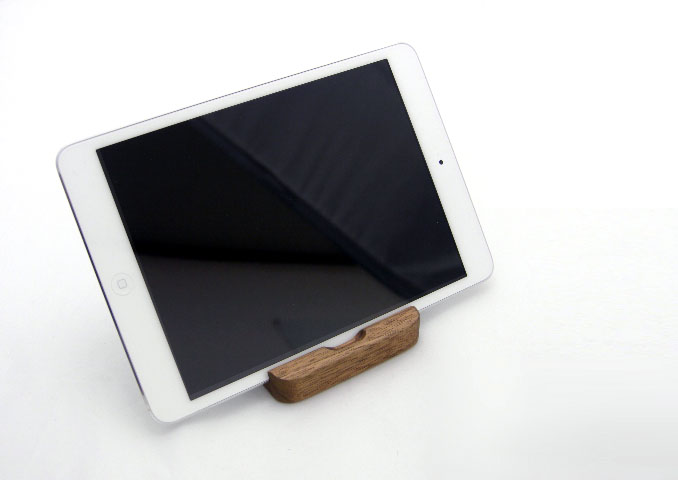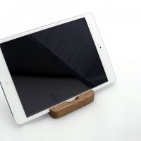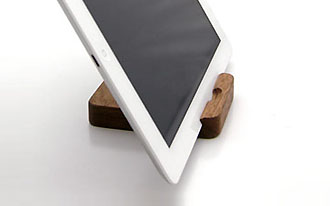 アルミのクールなデザインのiPadに似合う柔らかい木のぬくもりのあるスタンド。天然のくるみ材を加工し表面処理は体にやさしいオスモオイル仕上げ。