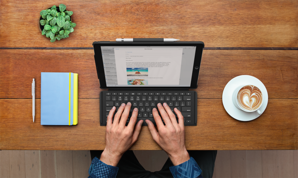 キーボードはSmart Connector経由でiPad Proから直接電力が供給されるため、キーボードの充電が不要です。消費電力を最小限に抑え、iPad Proの電力をセーブします。(一時間のタイピングでiPad Proのバッテリーの0.3〜1.6%を消費。*) さらに、キーボードをiPad Proにタイピングモードでセットすれば、すぐに接続が完了します。Bluetooth®ペアリングなどの面倒な操作は一切不要です。