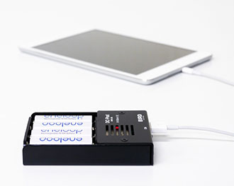 電源の消し忘れにご注意下さい。大電流のためにユニットが熱くなる場合があります。乾電池は冷めてから取り出して下さい。iPhoneの場合充電終了後に「このアクセサリの充電機能はサポートされておりません」と表示される場合があります。