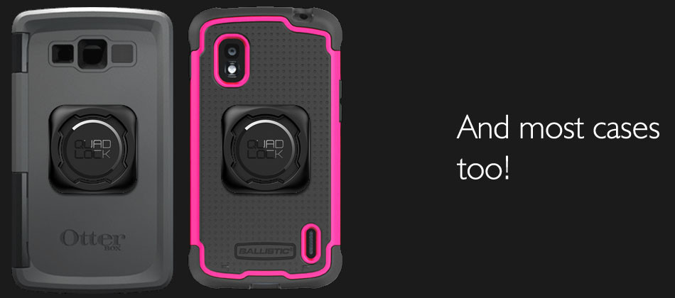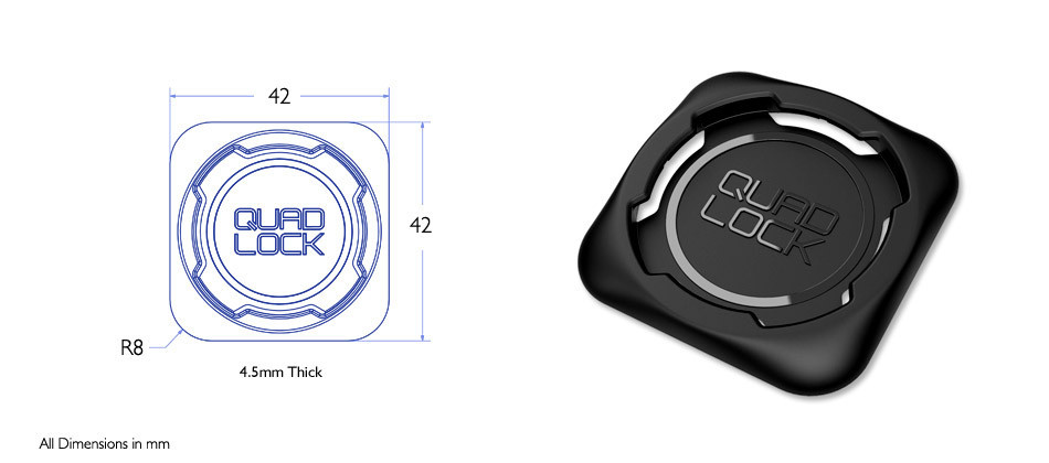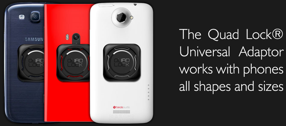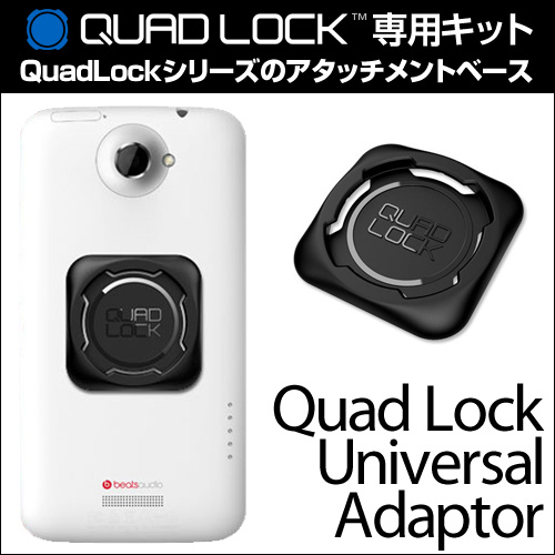 昨年大好評いただいたバイク&ウォールマウントキット『Quad Lock Deluxe Kitfor iPhone4S/4』の『Quad Lock』に新シリーズが登場しました。今回はiPhone以外のスマートフォンでも使用できる待望の『QuadLock Universal Adaptor』が登場、約42mm四方・厚みわずか約4.5mmのコンパクトサイズながら、スマホの背面に貼り付けることで『Quad Lock』専用ケースをお持ちでない方にもバイクマウントやウォールマウント、三脚マウントなどの『QuadLock』シリーズアタッチメントをご利用いただけるベースです。