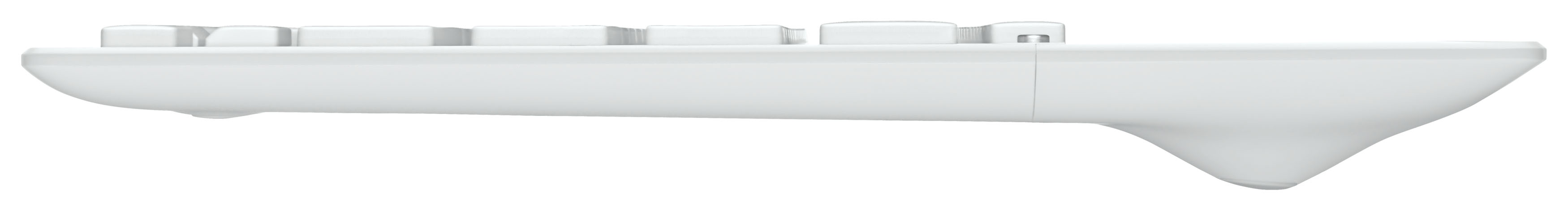 アルミニウムカラーを基調にしたスタイリッシュなミニマルデザインは、Appleデバイスにマッチします。キーボードには、Appleユーザーに馴染み深いアイソレーションレイアウトを採用したほか、幅293㎜/奥行164㎜のコンパクトサイズながら標準的な19.5㎜のキーピッチを確保しています。キートップは中央がなだらかに凹んだインカーブキーデザインを採用、ナチュラルなキータッチとスムーズな指の移動が、タイプミスを低減し、ストレスのないタイピングを実現します。