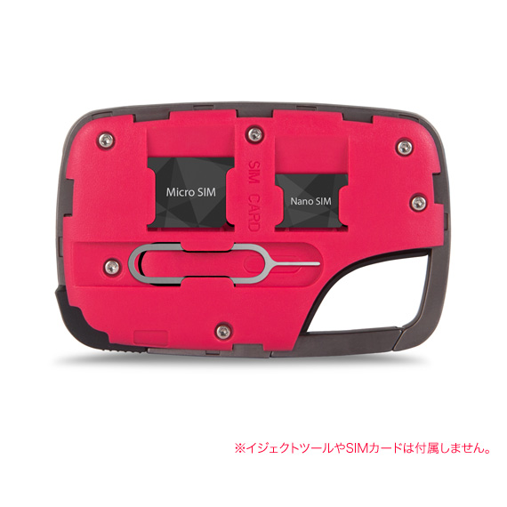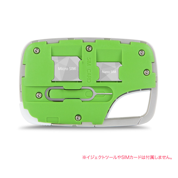マイクロ型SIMカード、ナノ型SIMカード各1枚と イジェクト・ツールが収納できます。