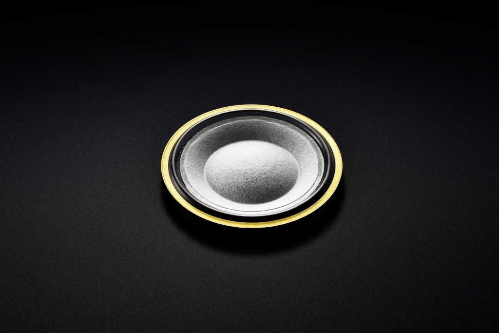 独自開発のドライバーは、ホームオーディオ用スピーカーと同様のフリーエッジ構造の採用により、振動板とエッジ に最適な材料を選定することで、5Hz~85kHz の広帯域再生だけでなく、クリアな音像と広い音場を実現しています。 振動板には軽量でありながら高い剛性を持ち内部損失が高いセルロースナノファイバーを使用し、エッジにはリニアリ ティーが高く不要な共振の少ないエラストマーを採用することで、迫力ある大きな音から微細な音までダイナミックレン ジの広い再生を実現します。