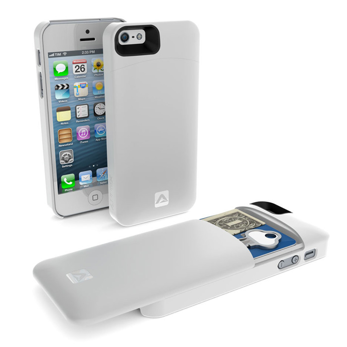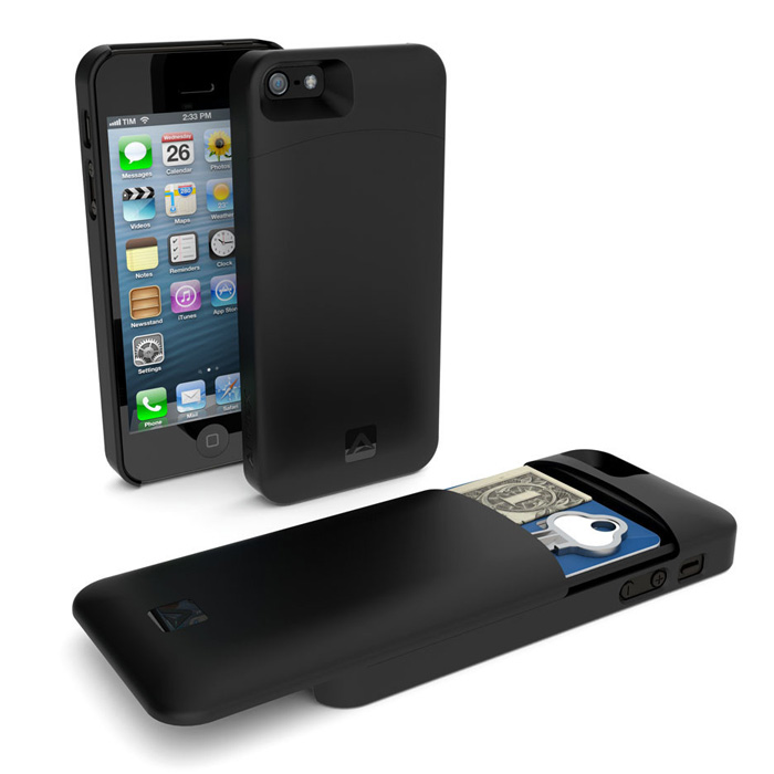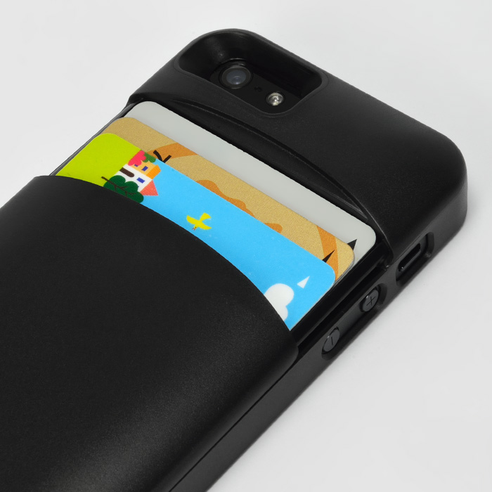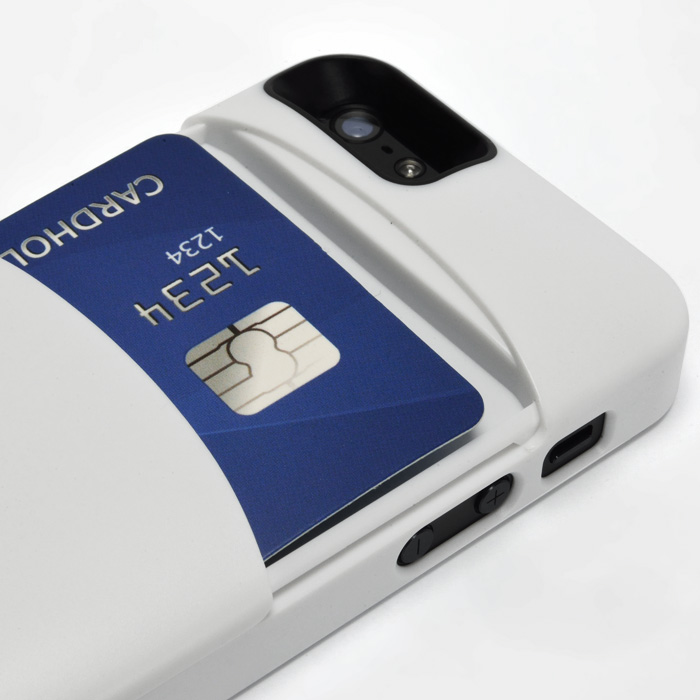 ICカードを背面のスライドカバー内に収納できるiPhone5用ケースです。