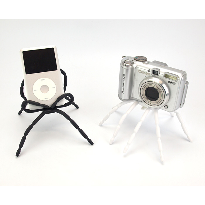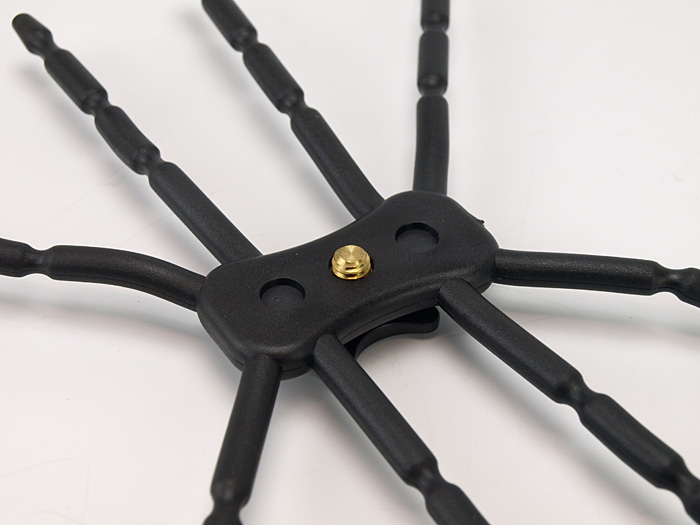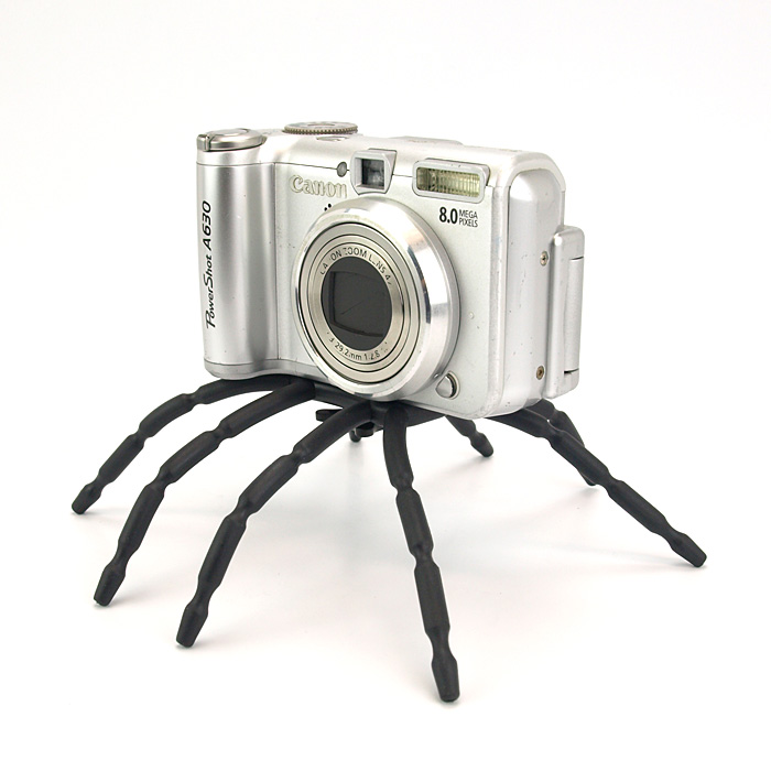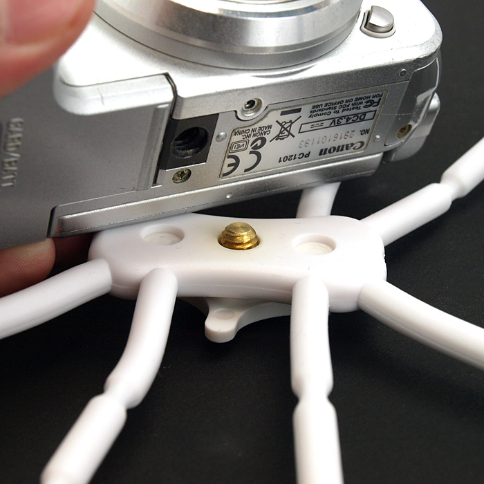 くねくねと自由に曲がる足が特徴のクモ足型カメラマウントです。コンパクトデジタルカメラなど、三脚穴を搭載した機器にお使いいただけます。