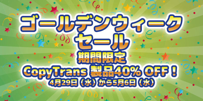 WindSolutions、CopyTrans製品40%OFFのゴールデンウィークセールを開催