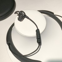 耳にフィットするイヤーピースにより遮音性もそれなりにあるので、ノイズキャンセルを最小にしても音楽再生にはほとんど影響を与えません。ノイズキャンセルを最大にすると音楽の再生を停止した状態でもかなりの静粛性を発揮します。また、形状は近年流行しつつあるネックバンド型で、インイヤータイプのイヤホン、ヘッドホンでありながら、耳に負担をかけずに多くの機能を盛り込むことを実現しました。