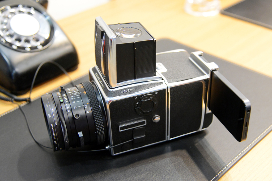 クラウドファンディングサービス「CAMPFIRE」で資金を募り、製品化する事が決定となったという事。フィルムやデジタルバックのセンサーの代わりに撮像を投影するレンズが組み込まれており、背面のアダプタにiPhone 4sをはめ込み、iPhoneで投影された像を再撮影するという仕組み。