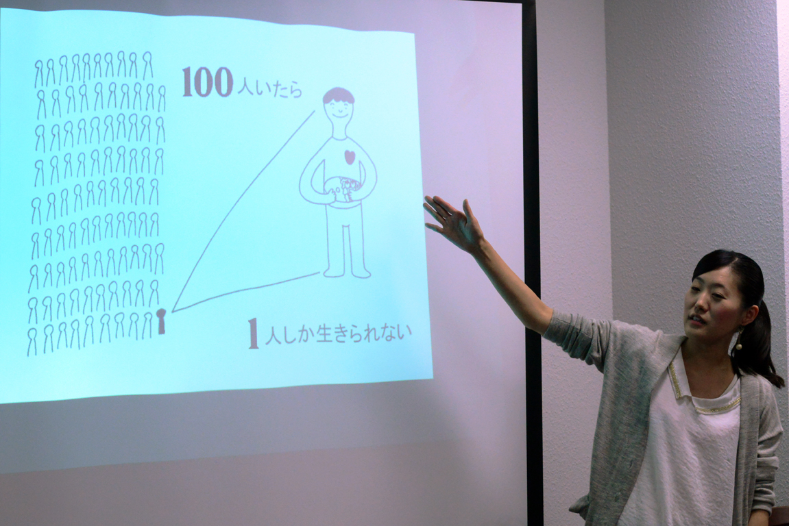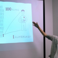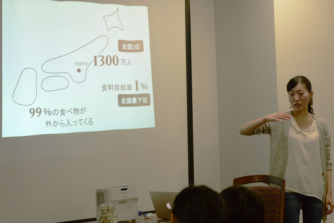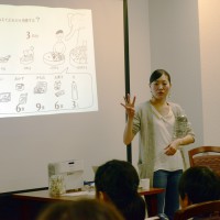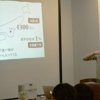 まず最初に、東京都の食料自給率について問いかけがありました。口々に10%とか30%とかの声が上がりましたが、正解はわずか1%。思いもよらない数字に会場内にも静かなざわめきが起こります。次に、災害を想定した食料備蓄はどれくらいあれば良いか、という質問には、3日とか1週間などの声が上がりましたが、阪神淡路大震災以降、東日本大震災以前では、確かに3日分の備蓄が推奨されていましたが、東日本大震災を受けて政府が定めた緊急事態食料安全保障指針では「最低でも2週間分の食料品を備蓄することが望ましい」とされている事が説明されると、無理だーという声もあがりました。