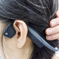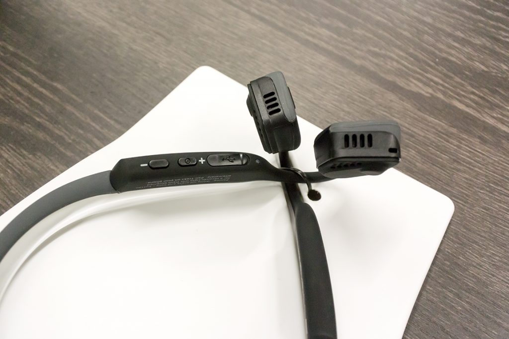 骨伝導なのでこめかみ以外でも頬骨や頭骨、顎など様々な場所で聞くことができる。最もよく聞こえるのは正しい装着を行った場合なのはもちろんだが、あちこち試してよく聞こえる場所を探すのも一興だ。場所によって、音量や明瞭さが最も良い場所、音楽を聴く際の音質が最も良い場所など変化を探るってみるのも楽しい。耳を塞がないので、音楽を聞きながら仕事をしていても、声をかけられても気づかないということは避けられる。自転車やジョギングなどのアクティビティ時でも周囲の音が聞こえるので、耳をふさぐタイプと比較してより安全とも言える。