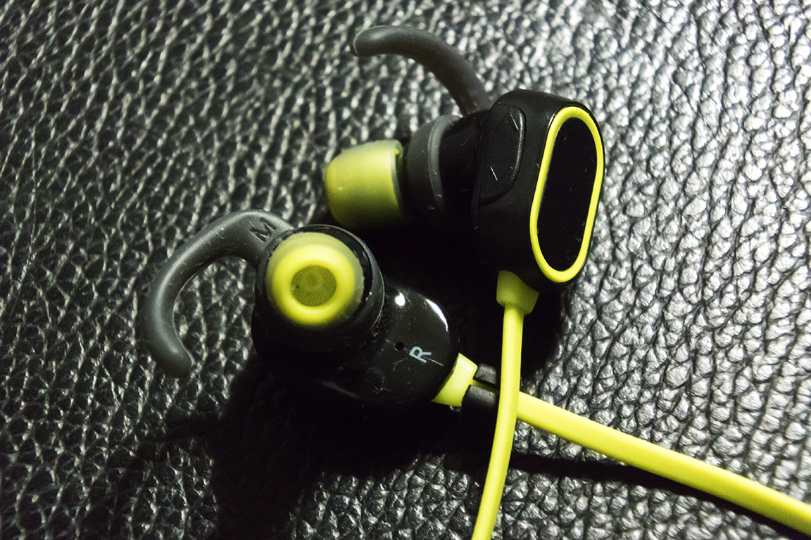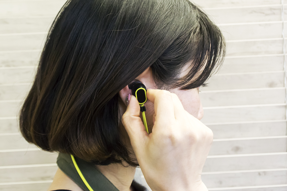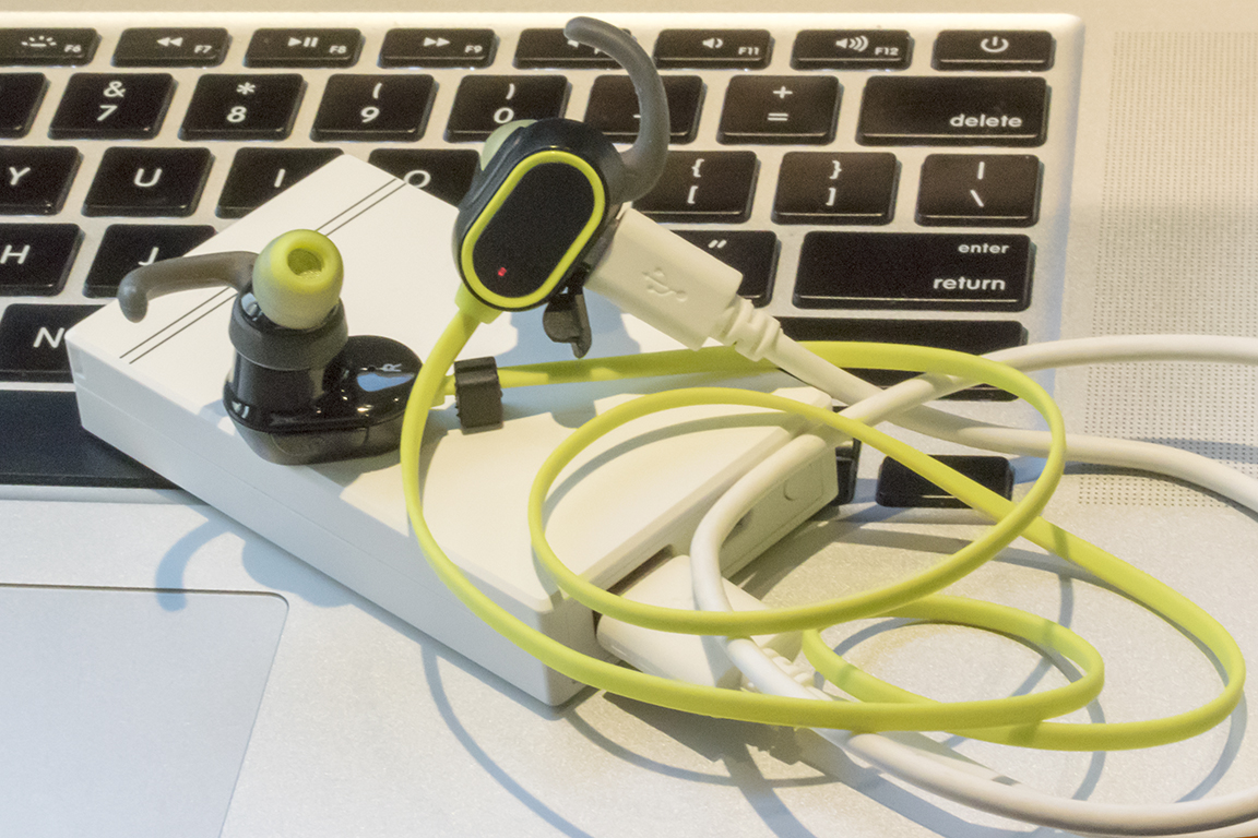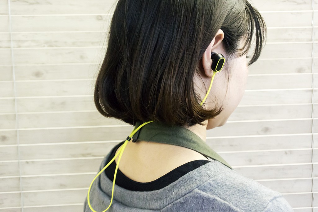 ケーブルはフィットクリップを使用して適切な長さにまとめる事ができる。イヤーチップ、イヤーホックを合わせても14gと軽量なので自重で耳から外れてしまうなどと言った事も少なく、それでいて8時間の連続稼働を実現しているので、通勤通学時の使用、帰宅してからのワークアウトなど1日使い続けても充分なバッテリー持続時間だと言えよう。