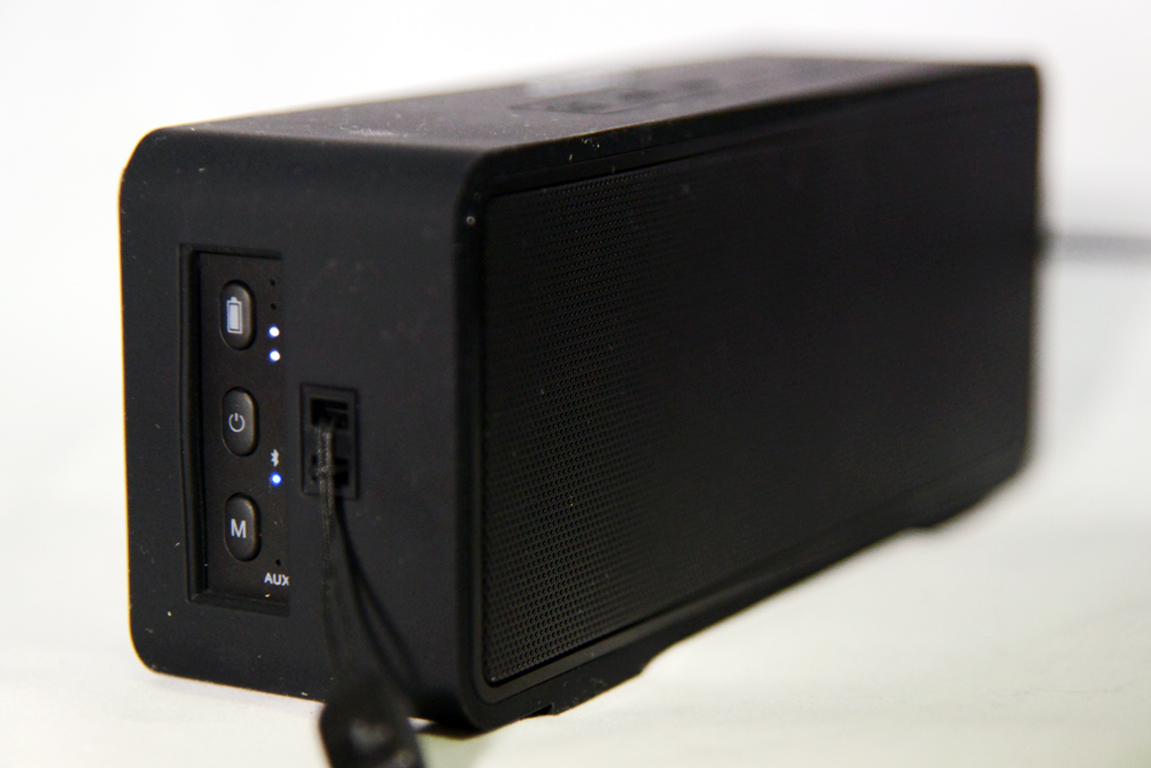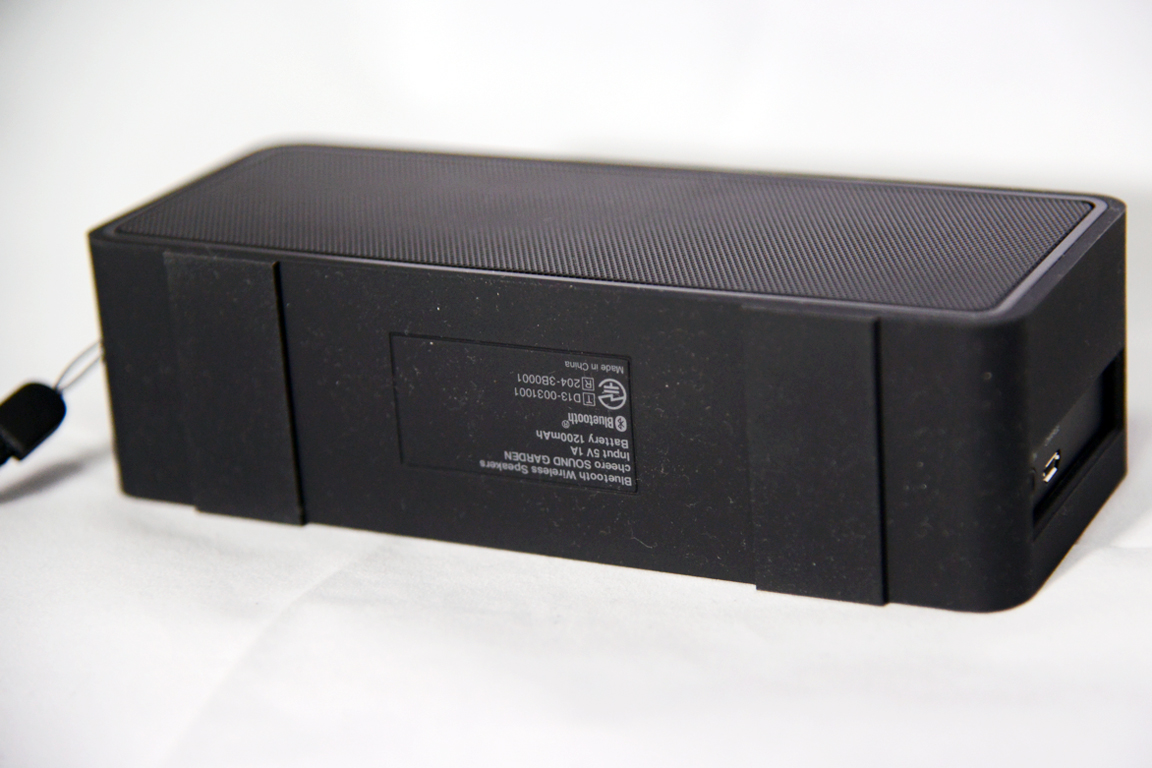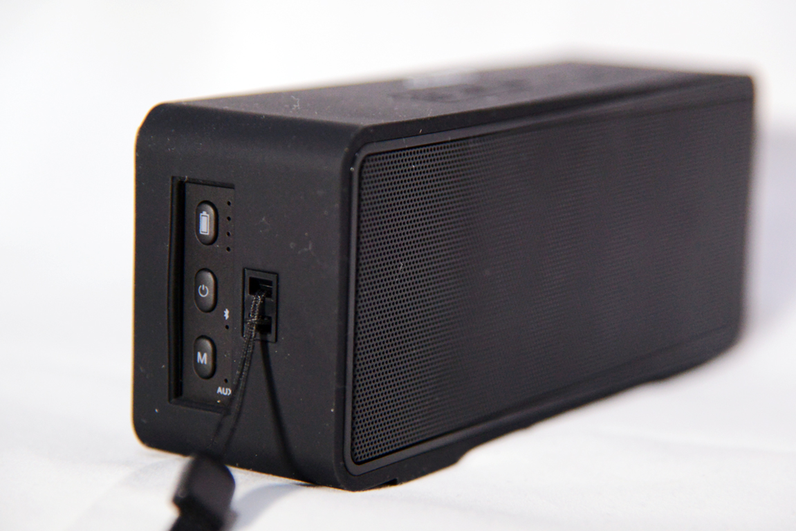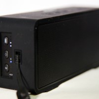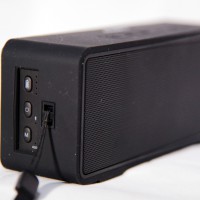 左右には、充電用のmicro USBポートとステレオミニジャック、電源ボタン、ソース切り替えボタン、バッテリーチェックボタンそして、Bluetoothのステータスランプ等が備わっている。また、本体上部には、着信/終話(再生/停止)ボタン、早送り、巻き戻しボタン、ボリューム(+ー)ボタンがあり、着信/終話(再生/停止)ボタンを長押しする事で、Bluetoothのペアリングを行う事ができる。(PINコード/パスコード:0000)ソース切り替えボタンが付いているのはなかなか珍しいかったりと、製品そのものにまだ煮詰める余地は残されているように感じるが、操作自体は簡単で、音質も悪くないという事で、初めて購入するBluetoothスピーカとしては最適だろう。