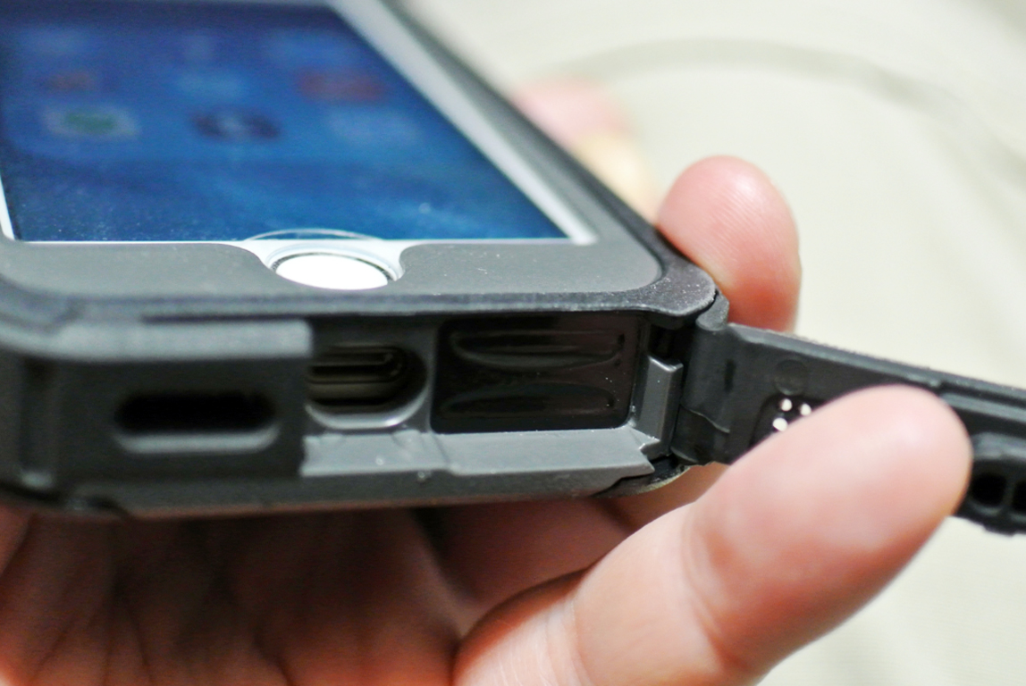 前モデルに引き続き、ケースに収納した状態で充電ケーブルやイヤホンを差して使用することができる。しかし、その際は防水性は失われるので、音楽や通話等は「JayBird BlueBuds X」などのBluetoothヘッドホン、ヘッドセットなどを使用すると良いだろう。せっかく防水性能のあるケースを使うので、Bluetoothヘッドホン、ヘッドセットも防水性能がある方がより活用範囲が広がるだろう。もちろん、通話に関しては通常どおり、iPhoneのマイクとスピーカを使用して行う事もできる。